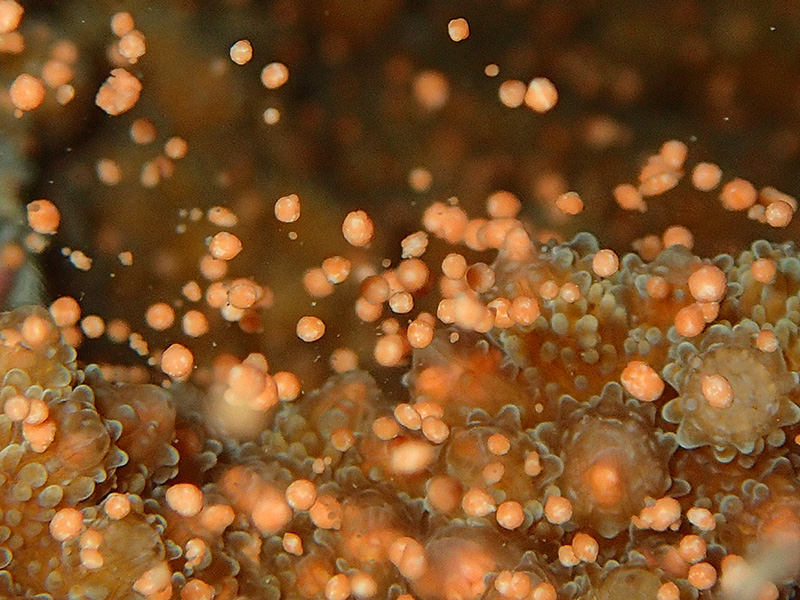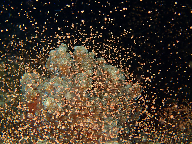 ちょうど通常のダイビング中に、ハナヤサイサンゴが産卵していました。