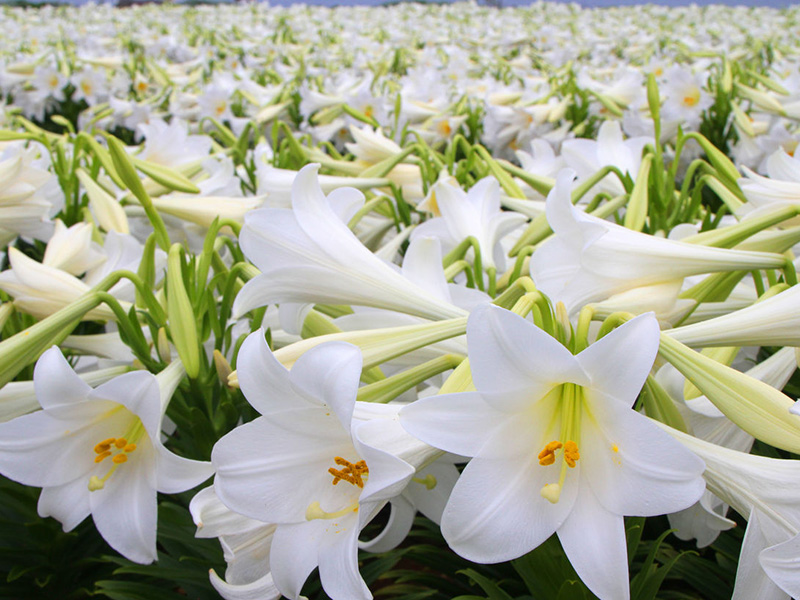 青い海と青い空をバックに、真っ白なテッポウユリが咲き乱れるのは壮観ですよ。