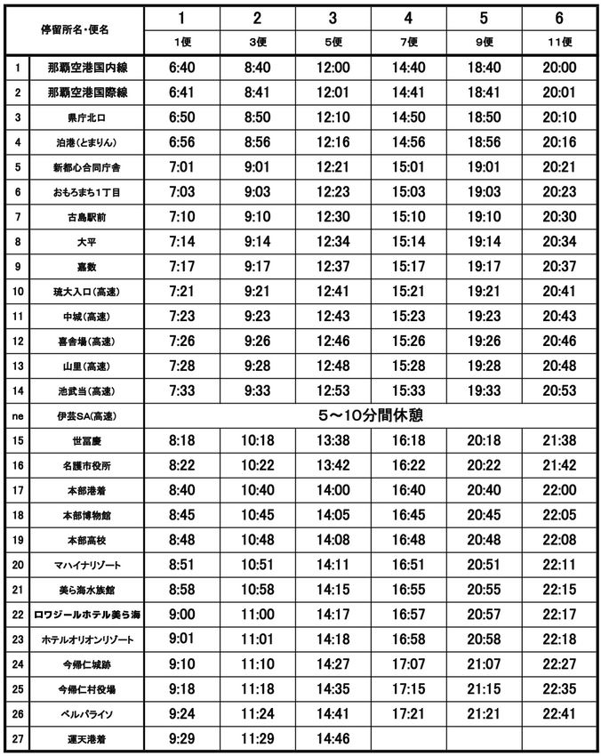 那覇から本部港まで直行で便利なやんばる急行バス